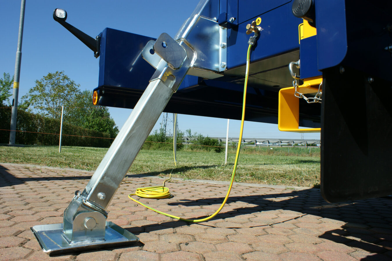 Vier hydraulisch ausfahrbare Standbeine sorgen binnen Sekunden für einen sicheren Stand der Anlage und per Knopfdruck fährt der hydraulisch getriebene Mehrsegmentmast innerhalb von 15 Sekunden auf die maximale Höhe von neun Metern aus.
